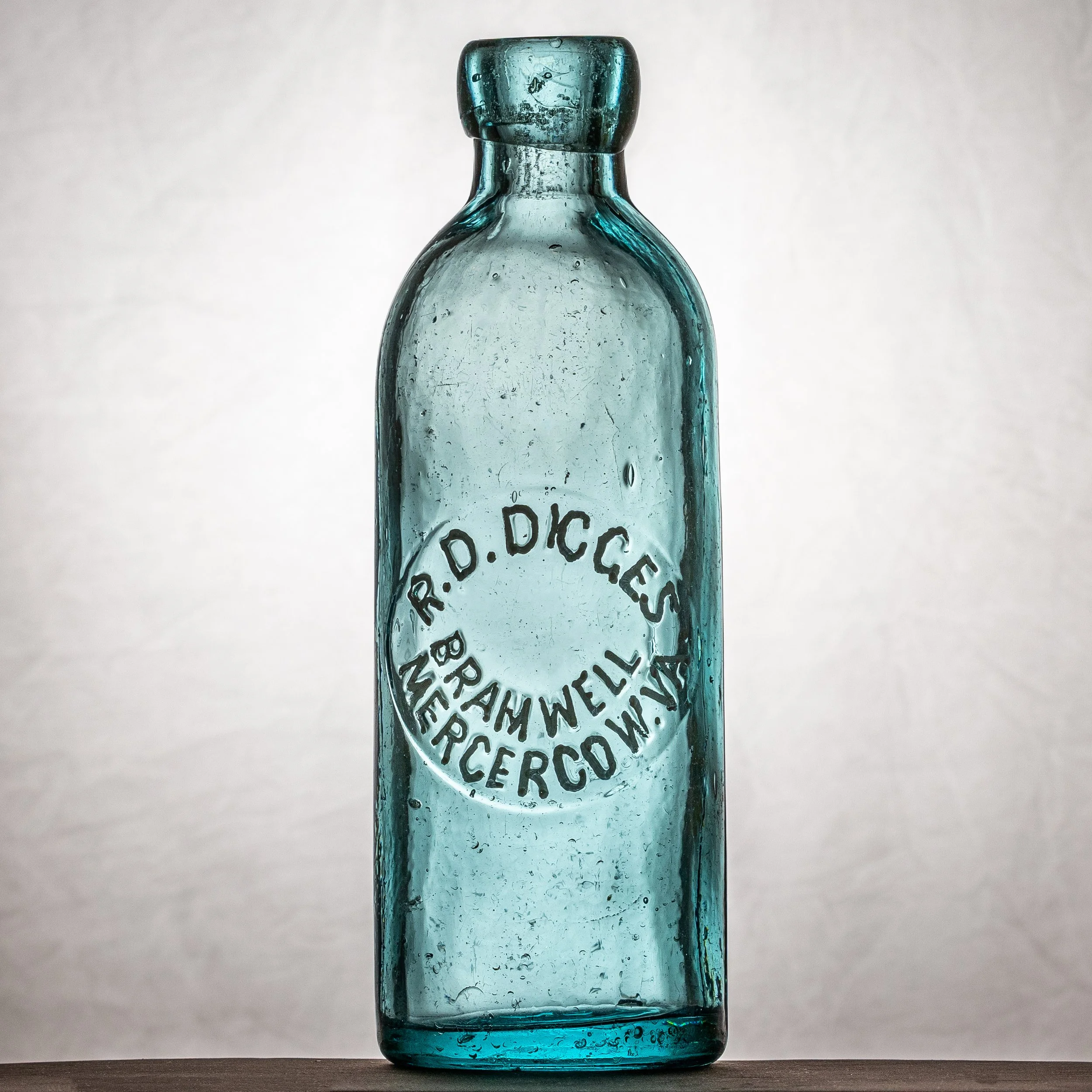 Three to four bottles are missing here. One says “R.D. Digges, Mercer County,” another “Bramwell Bottling Works, Bramwell,” and a final one is a Roorbach stopper bottle with no town-state line, rather just “Bramwell Bottling Works.” There may also be a Hix & Dupuy Roorbach bottle.